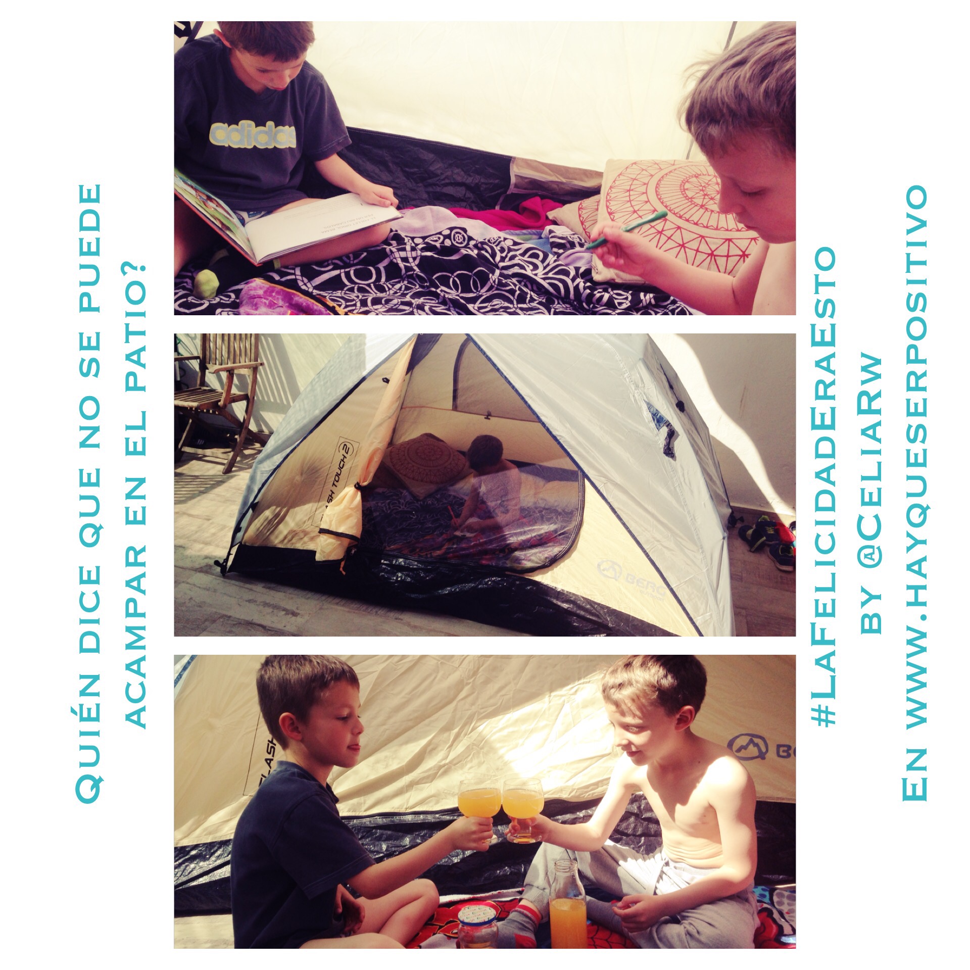La felicidad es irse de acampada. Aunque sea en el patio de casa. Saca la tienda. Desempólvala. Móntala con dos niños de feria tocándolo todo. Llena el suelo de mantas, pareos y cogines. Trae libros, hojas, colores. Lee, pinta. Haz una limonada fresquita. Y acampa. Tan simple. Y tan felices 🙂