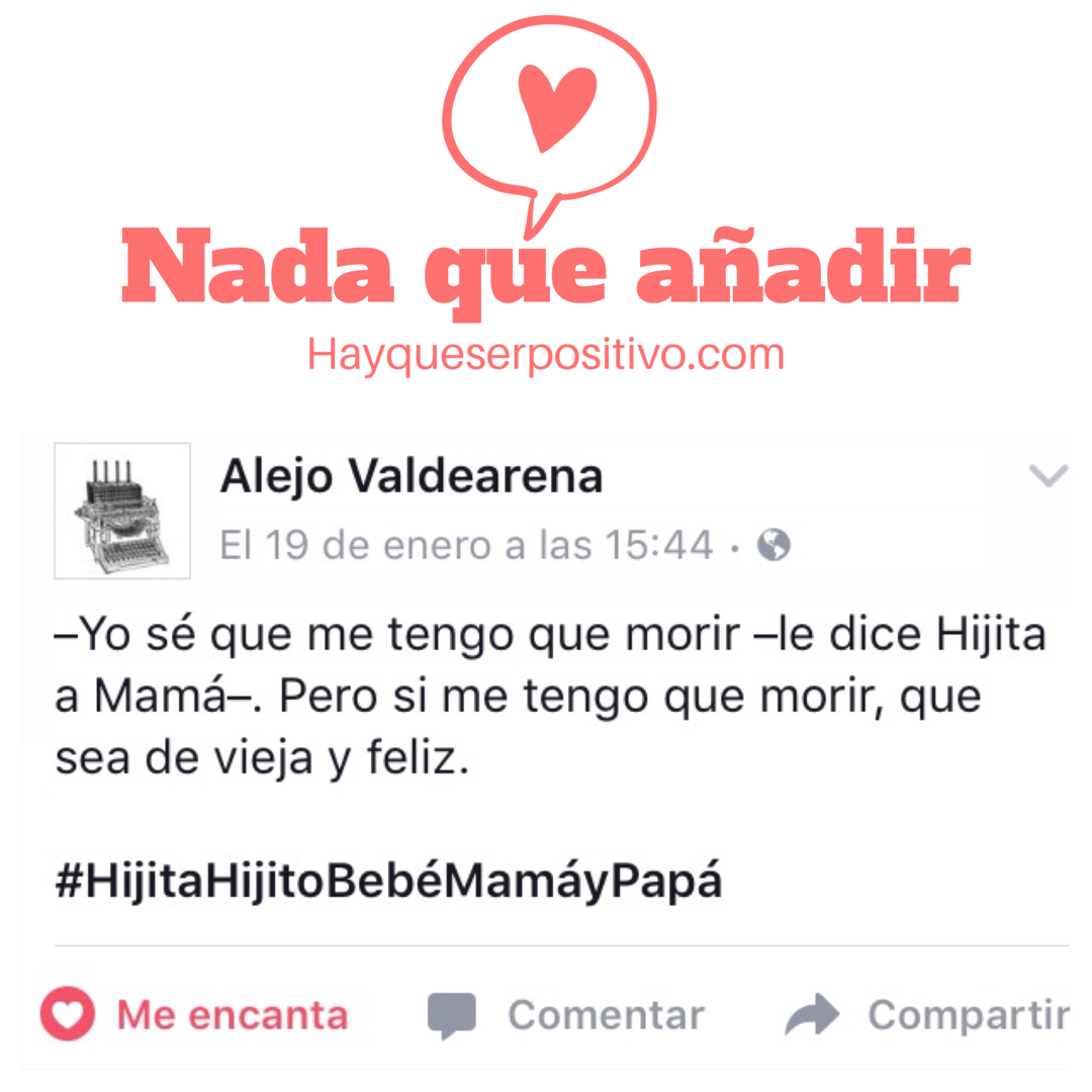 Yo también quiero morirme de viejita y feliz, si es que me tengo que morir.