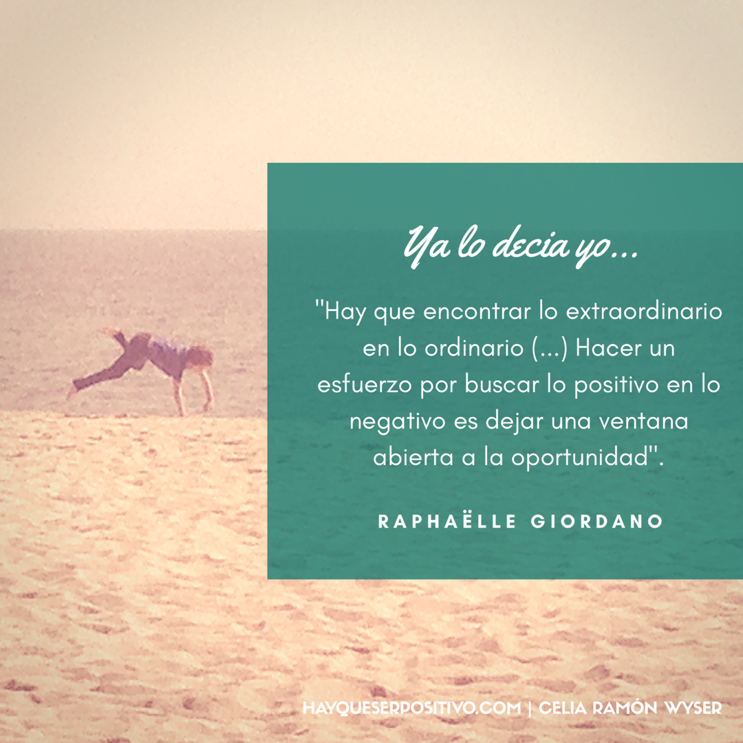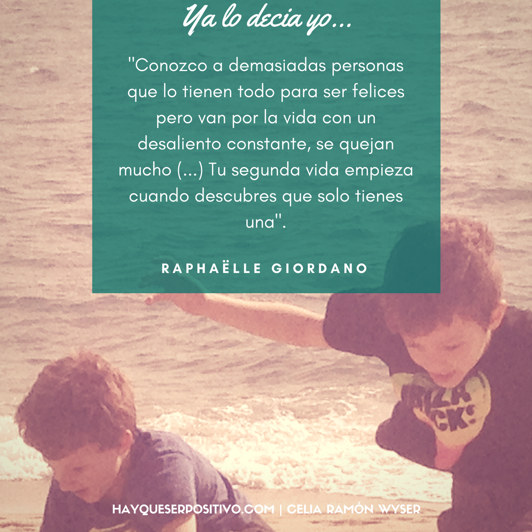 Recibo un WhatsApp de una amiga que me dice «he visto La Contra de La Vanguardia y te va a encantar, me ha recordado a todo lo que dices tú el blog Hay que ser Positivo». Y mira, resulta que no lo digo yo, que Raphaëlle Giordano, escritora, pintora y ‘coach’ en creatividad, se está forrando tras vender un libro de autoayuda una vez superada su crisis de los 40 con la que ha descubierto que #hayqueserpositivo y descubrir lo extraordinario en lo ordinario, dejar la ventana abierta a la oportunidad.