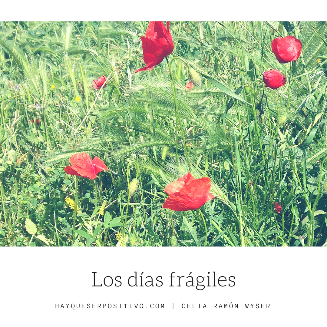 En el borde de la carretera hay amapolas. Qué bonitas flores, tan rojas, tan finas… Y qué delicadas… Las amapolas son como tus días frágiles. Esos días en que el mundo brilla como siempre pero que tú te puedes romper con cualquier soplo de viento. Días en que luces tus colores como si nada pero que te sientes algo débil. Tienes un pequeño dolor ahí, un pensamiento oscuro allá, una nostalgia que tiñe el día de azul, una flojera que te hace mirar el día un poco de lado… No pasa nada, todo el mundo tiene días frágiles. Quizá deberías ponerte un cartelito como esos de las copas en los paquetes de mensajería. No como si fuera una lamentación, solo para decir en pocas palabras que hoy no tienes fuerzas para lidiar con mucho, que hoy necesitas paz, algunos mimos, una sonrisa franca. Sólo para decir que hoy es un día pfffff y que mañana será otro día. No pasa nada, todo el mundo tiene días frágiles. Y los supera. Y el mundo gira. Deberías poder admitirlo sin vergüenza, sin miedo a que nadie se aproveche de tu debilidad temporal. Porque hoy eres como esa amapola que luce orgullosa sus colores rojos en primavera pero sabe que cualquier golpe de viento acabará con ella. Porque hoy tienes un día frágil, y no pasa nada.
