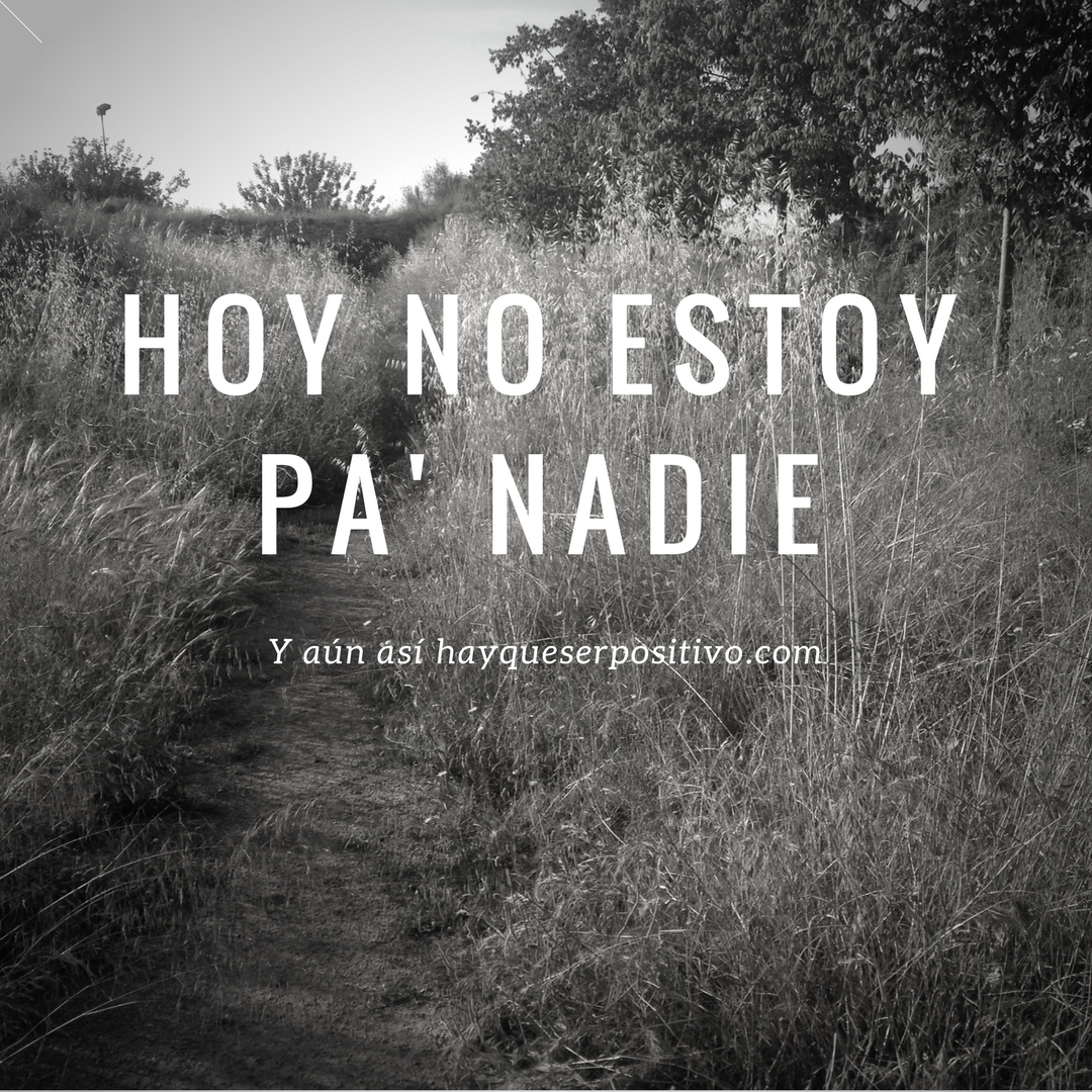 Que no, que no estoy para nadie hoy. Lo justo para pasar el día lo mejor posible. Y mañana será otro día y listos. Eso sí, hay que ser positivos. Así se sobrelleva mejor un día en que no estás, sabiendo que está bien no estar, sabiendo que otro día estarás más y mejor.