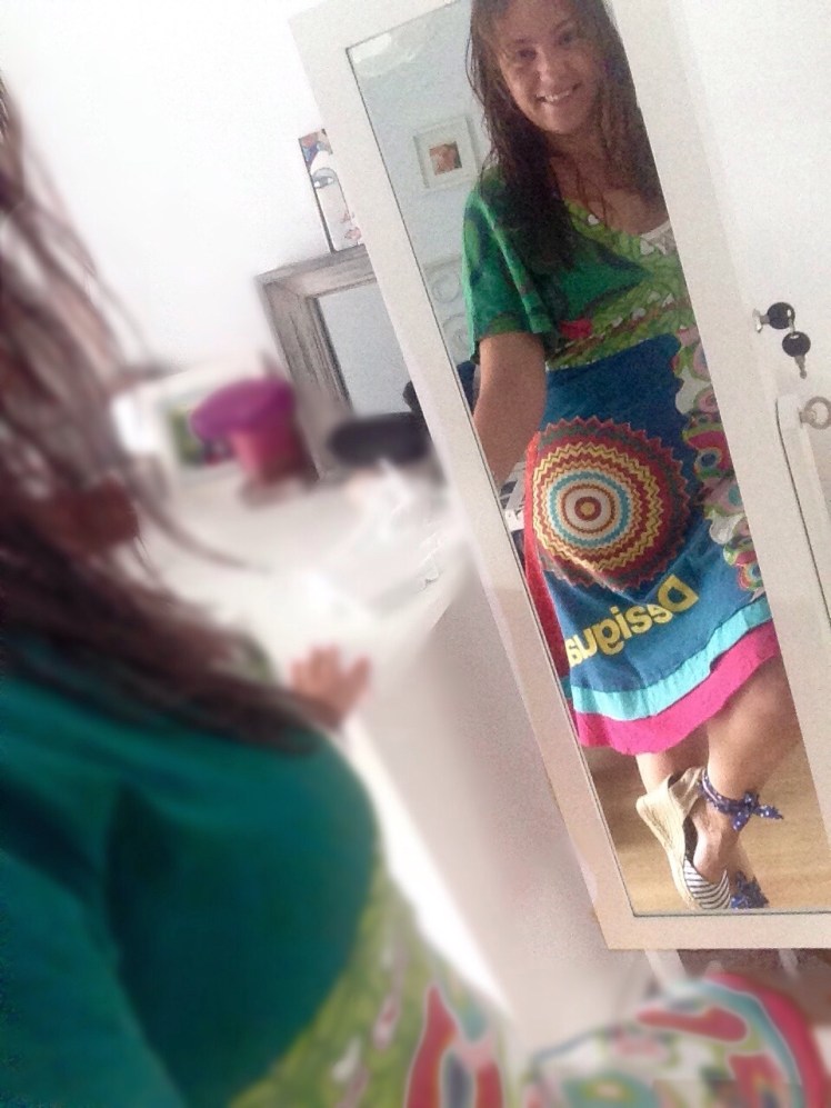 Pero a pesar de todo, hoy es un día importante. Porque tengo un espejo de cuerpo entero. Y me he mirado. Y he callado mi yo destructivo. Y me he vestido de colores y con cuñas. Y me he sonreído. A mí. Para quererme y respetarme. Y he conseguido compartir mis inseguridades con ❤️