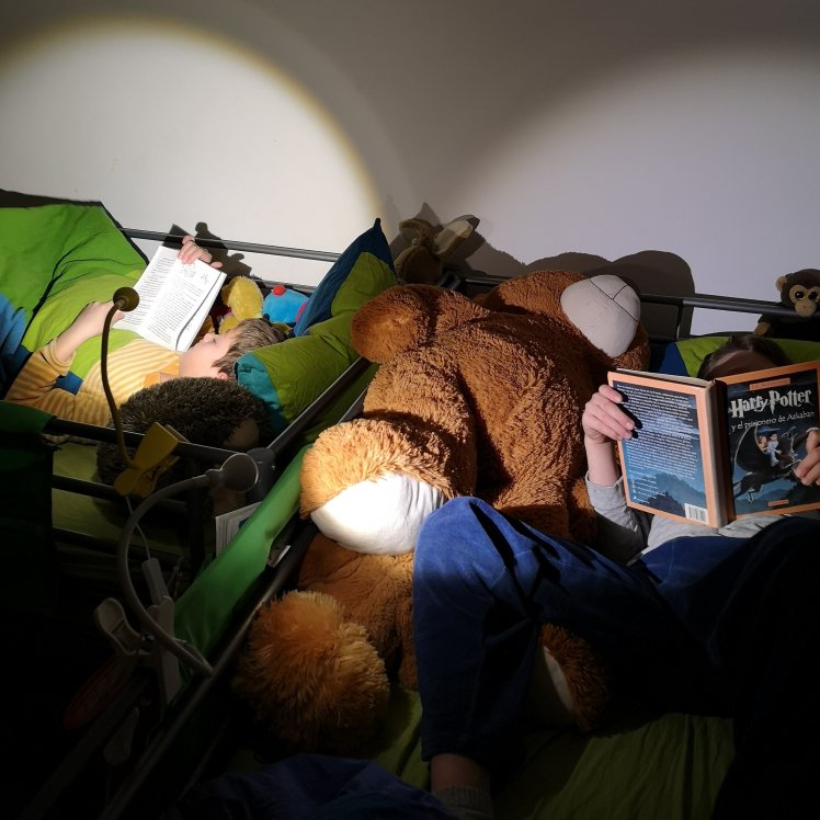 Y llegar a casa justito para arropar a tu hijos. Sí, bienvenidos a la realidad, la conciliación son los padres (y los abuelos). Justo para que lean una página (o dos) antes de ir a dormir. Justo para transmitir el placer de dormirse leyendo, con la imaginación a punto para sueños llenos aventuras.