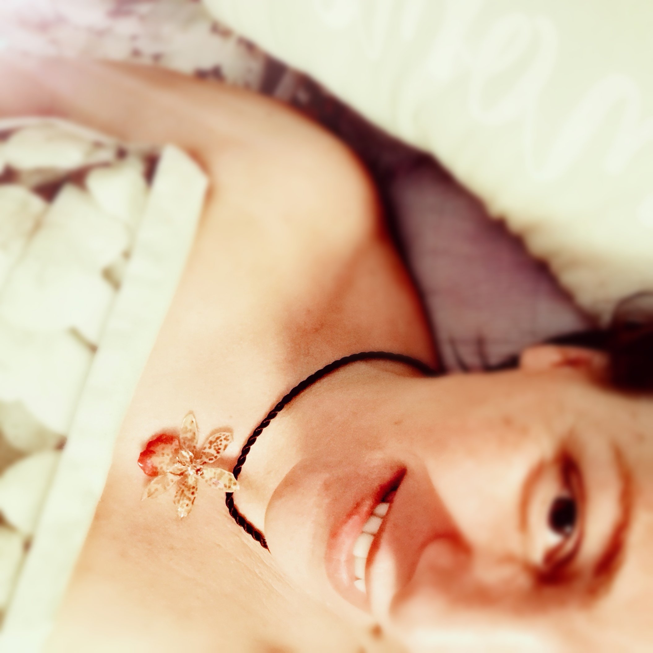 Ahora que hace calor y las neuronas andan algo dormidas, me siento un poco como flotando. Como si los pensamientos andaran lejos, de paseo, a su ritmo. Un poco perdidos en el tiempo, como la preciosa flor de orquídea natural que me han regalado a modo de collar unos amigos de Costa Rica… Llevarla colgada me da un poco más de aire para vivir dejándome llevar, me recuerda que la amistad, los abrazos y las conversaciones de ponerse al día son lo que realmente importa. Que hay que dejar que todo fluya.
