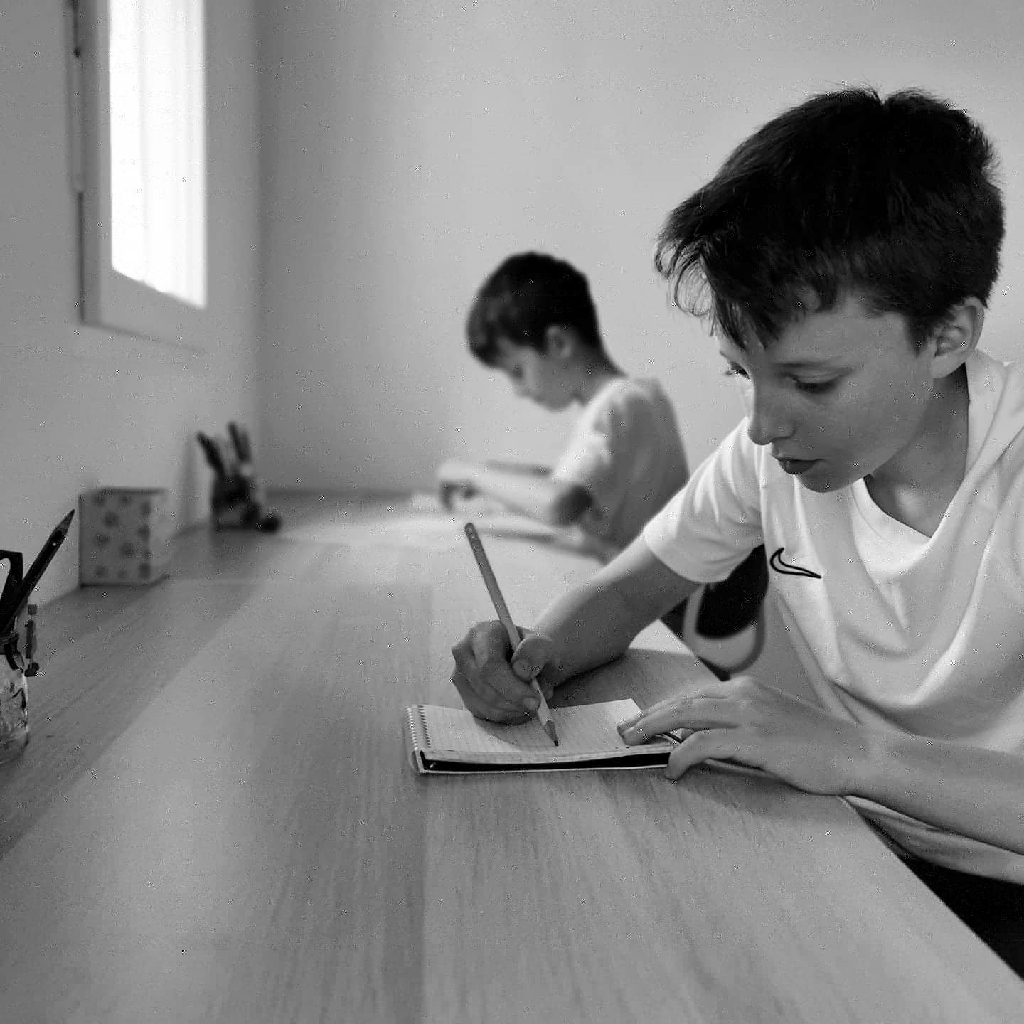 *Día 10: trabajo* Empezamos la semana con los deberes hechos: meses de trabajo después por fin hemos acabado de transformar la habitación infantil en una habitación apta para niños en crecimiento, futuros adolescentes, jóvenes, hombres. Por fin hemos acabado de tirar el falso techo, recuperar las vigas, ganado altura sobre sus cabezas (porque son dos y sí o sí tienen que seguir en litera). Por fin tenemos puertas y ventanas que cierran bien, con persiana. Por fin hemos pintado. Y quitado muebles viejos. Y montado muebles nuevos. Y ordenado (aunque de eso todavía queda). Por fin vemos la luz, que parece que nunca acabamos de estar en construcción.