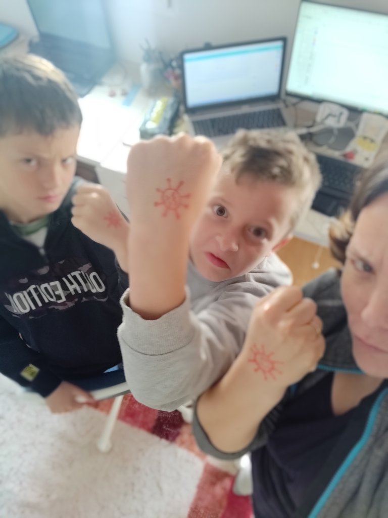 Hoy hemos aplicado una idea instagramera cool de las que tengo amontanadas a ver si me da tiempo a llevar a cabo toda la lista (cuando acabe todo esto): dibujar el coronavirus en la mano para ir limpiándonos las manos regularmente durante el día. Si lo conseguimos, punto. Y si tenemos todos los puntos de la semana, premio (a definir, francamente).