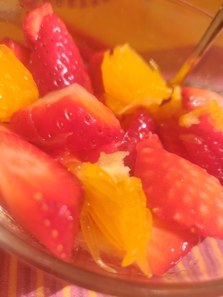 Día 27… Hoy me ha hecho feliz comer fresas. A mordiscos. Con naranja. Bajo el sol.