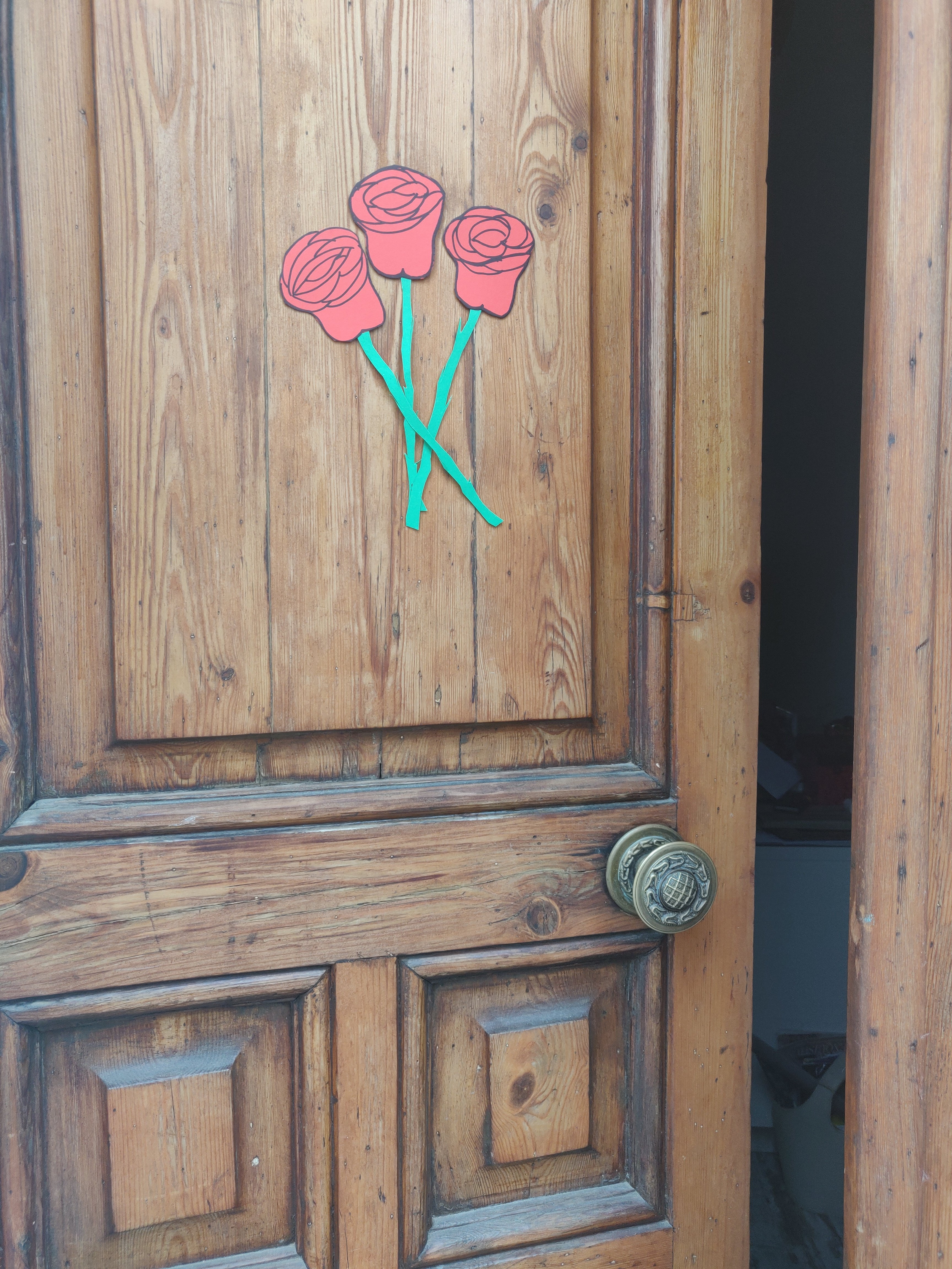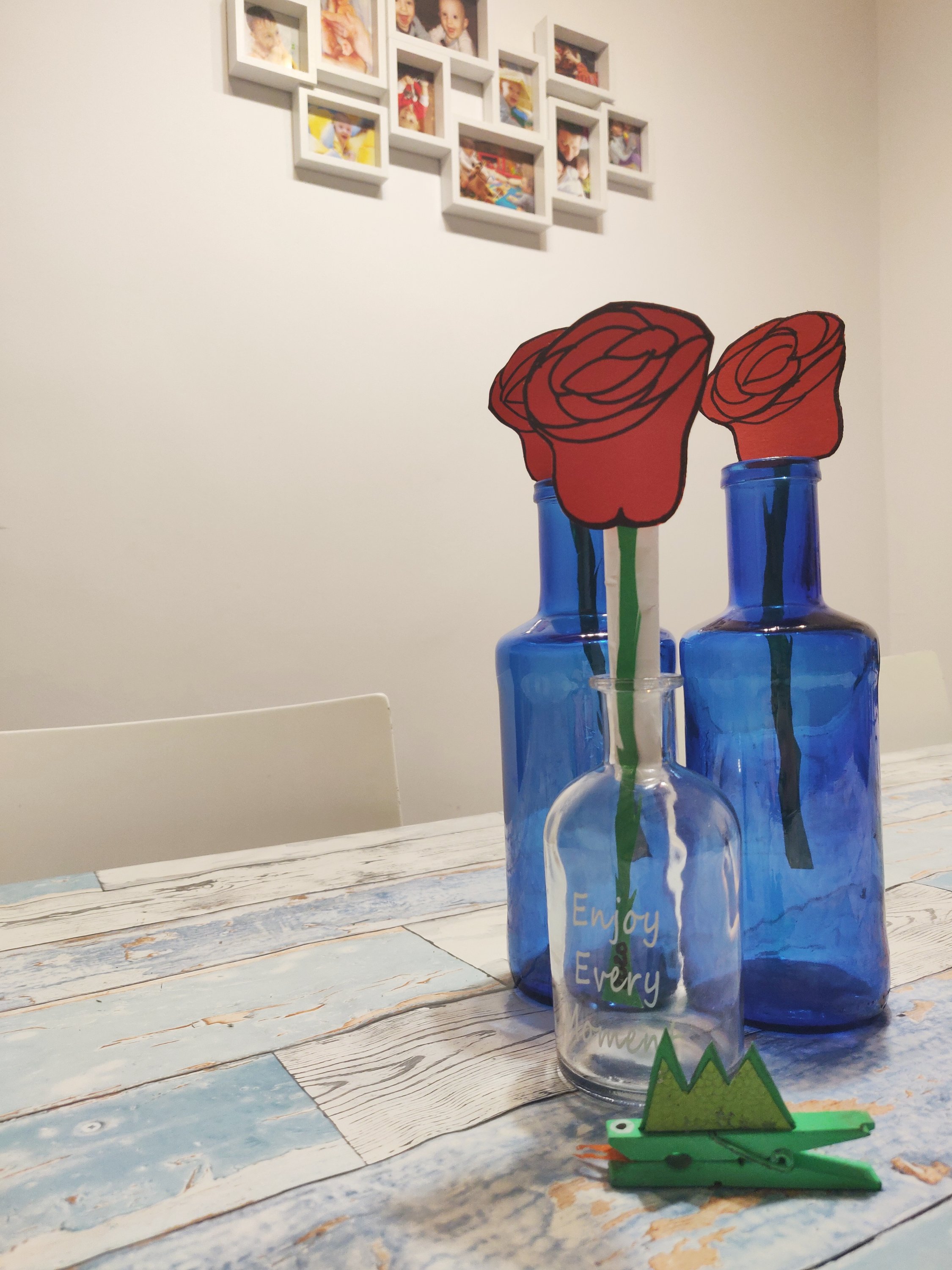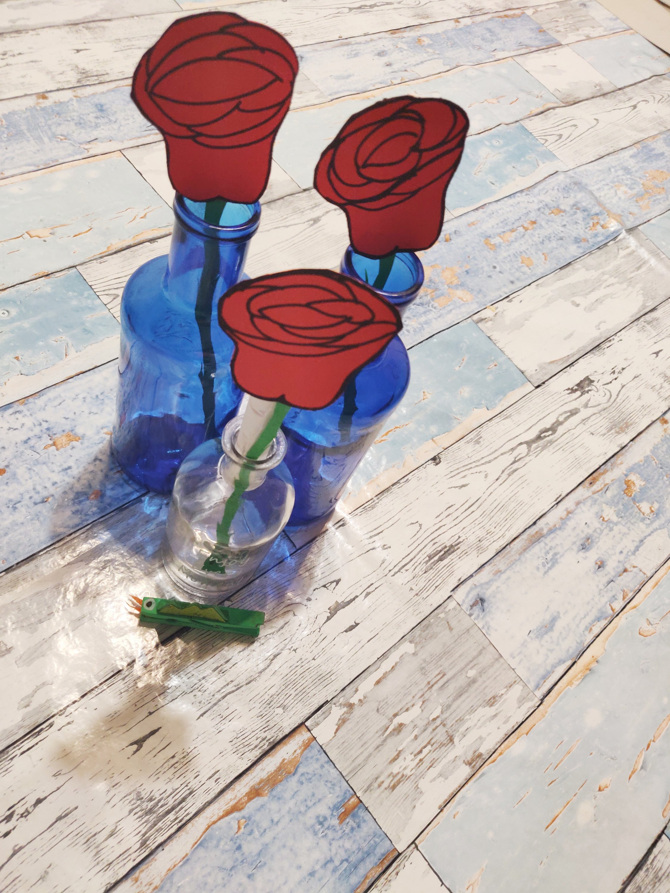 En fin… Por lo menos tenía cartulina roja y verde (unos retales) y pude dejar anoche tres rosas para mis tres príncipes. Los libros están en camino. Y yo… Bueno, me temo que me tendré que conformar con pinzas de dragones y algún libro algún día cualquiera porque mis tres hombres son un amor pero previsores, previsores…
