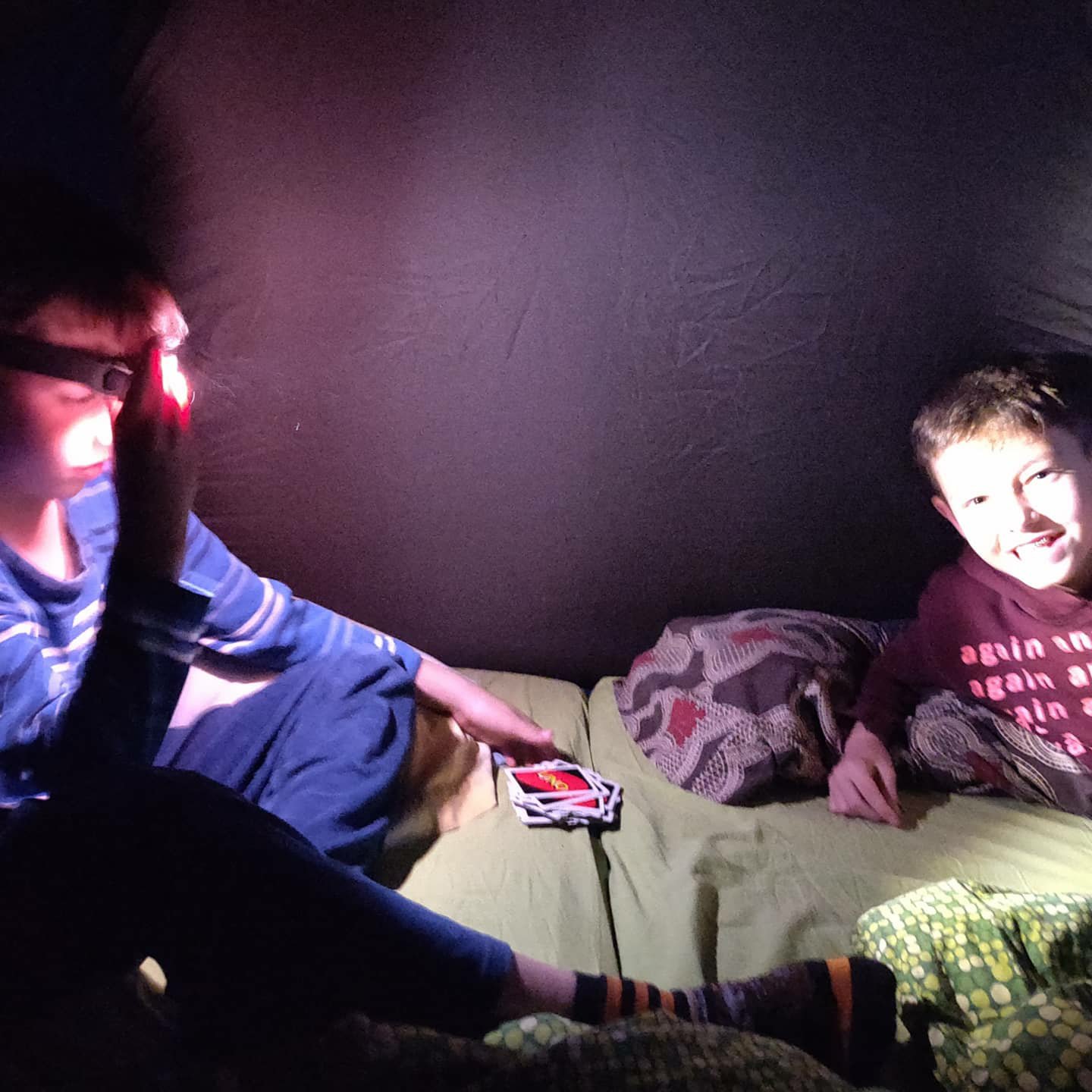 Como ya se veía venir que para esta celebración estaríamos confinados por el pxxx coronavirus, hemos preparado un cumple especial como se merece pasar de un número a dos. Ellos querían una macro fiesta con todos sus amigos de clase, amigos de familia, primos, tíos, abuelos… Una barbacoa inmensa con decoración, juegos de siempre, y muchos pasteles, abrazos y risas. Pero no ha podido ser. Así que como también se perderán las colonias que iban a hacer con el cole, hemos organizado una acampada en el patio. Una tienda con colchones, banderines de colores, velas para dar ambiente y nubes y salsichas para asar en la barbacoa como si fuera un fuego de campo. Y jugar al UNO en familia. Ese ha sido el pistoletazo de salida.