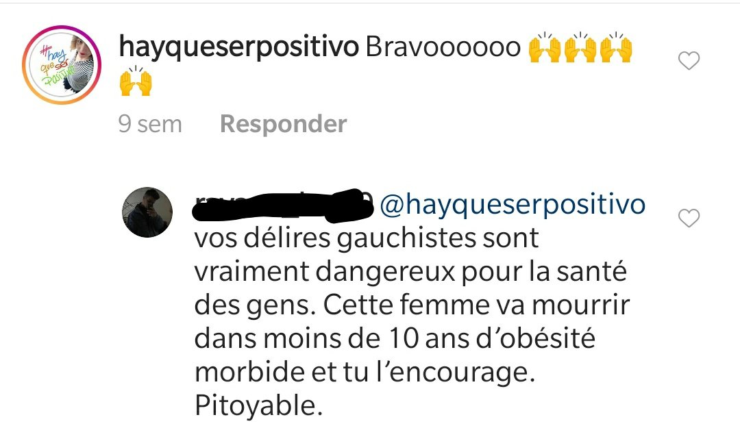Parece ser que soy una peligrosa izquierdista (no sé qué tiene que ver aplaudir la diversidad y el respeto por uno mismo y por el otro con ser de izquierdas o derechas… ¿Significa eso que ser de derechas es ser delgado, sano, gordofóbico e intransigente con las tallas grandes? No lo digo yo… Me sorprendió la deducción y el calificativo de peligrosa izquierdista). Pues eso, que soy peligrosa porque defiendo la obesidad y promuevo un estilo de vida que por lo visto llevará a la modelo a la muerte en máximo ocho años por mis ánimos desbocados a la insalubre obesidad mórbida de la modelo.