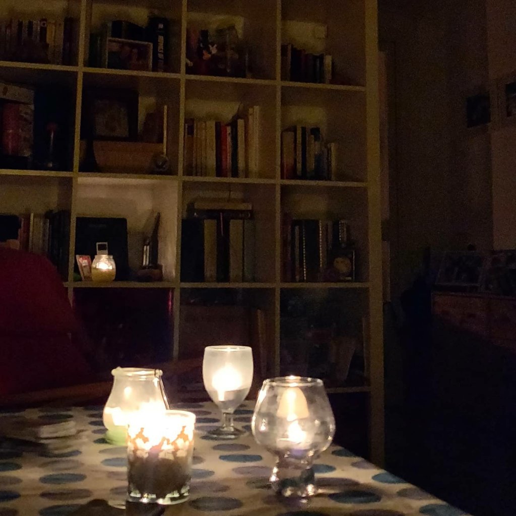 Y mientras yo disfrutaba de la luz de las velas y pensaba que deberíamos instaurar la noche sin luz una vez a la semana. Una noche de juegos de mesa en la penumbra, de conversar o contar cuentos con un té calentando las manos. Una noche sin tele ni consolas ni móviles ni Internet ni nada que no fuera mirarse a los ojos. Lo propuse y me miraron como si estuviera loca. A veces no se acuerdan que crecí en una casa de campo sin luz ni agua corriente. Y fui feliz.