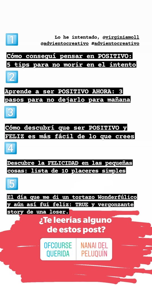 PD: el ejercicio de #advientocreativo sobre los titulares era un poco diferente, lo sé @advientocreativo, pero espero que me permitas la licencia @virginiamoll.